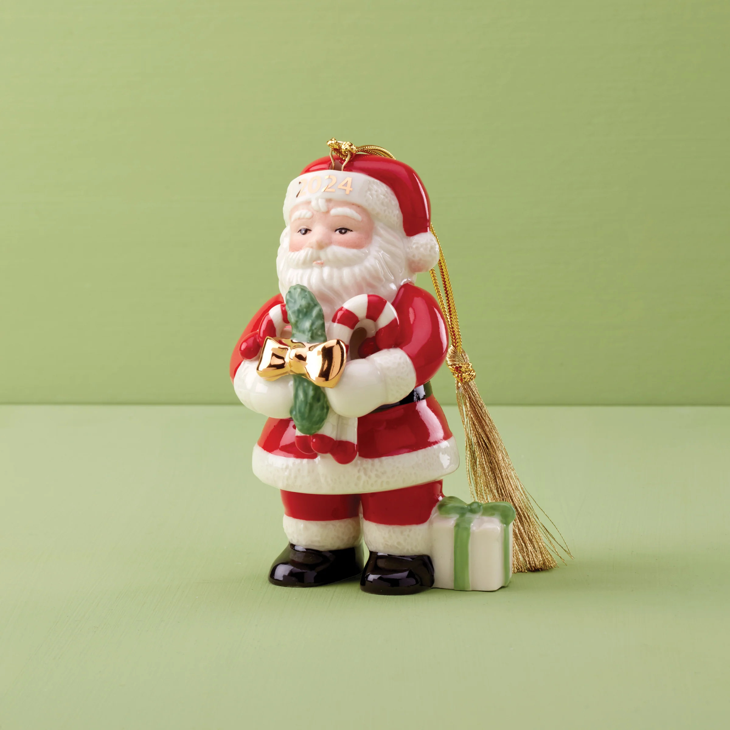 2024 Santa With Pickle & Candy Cane Ornament