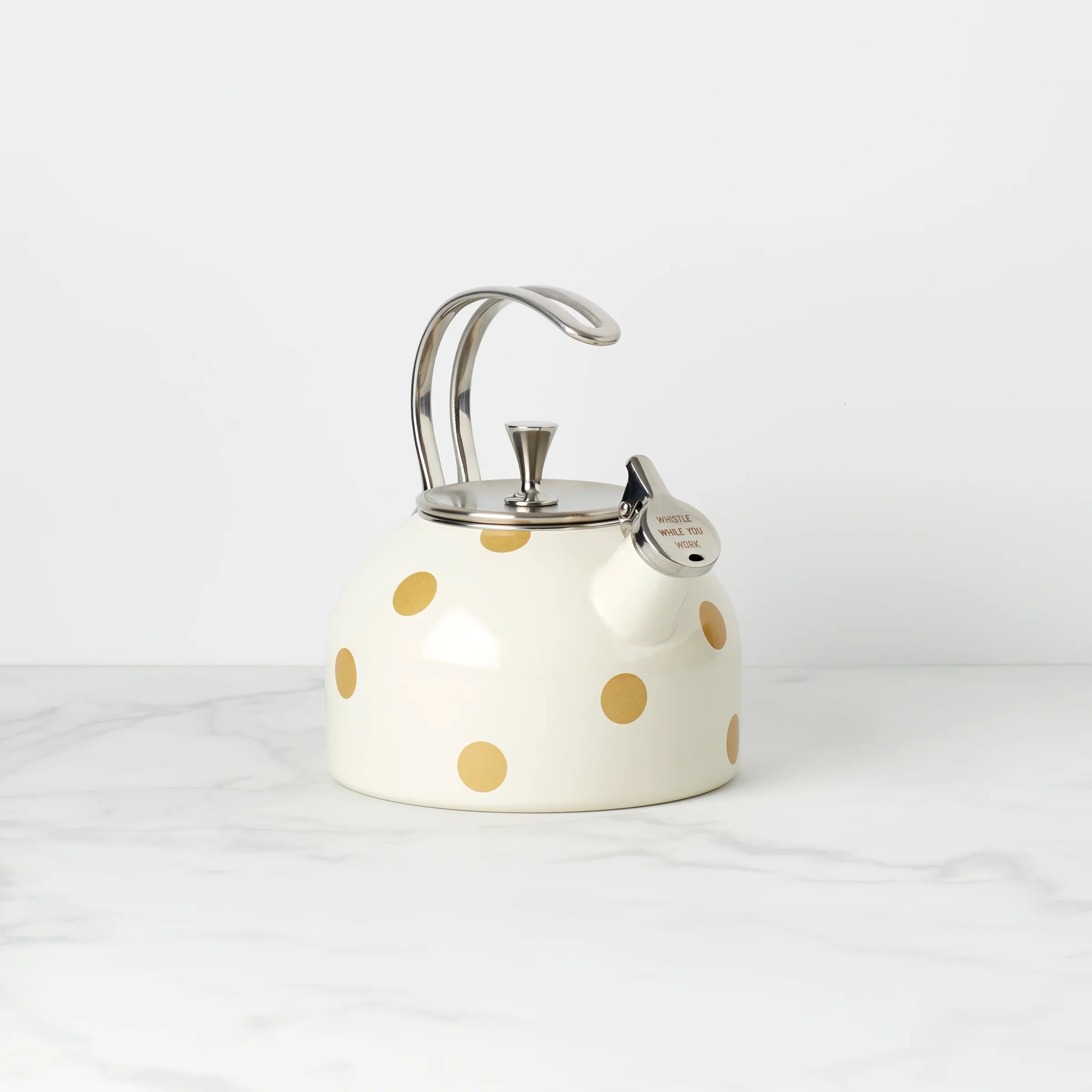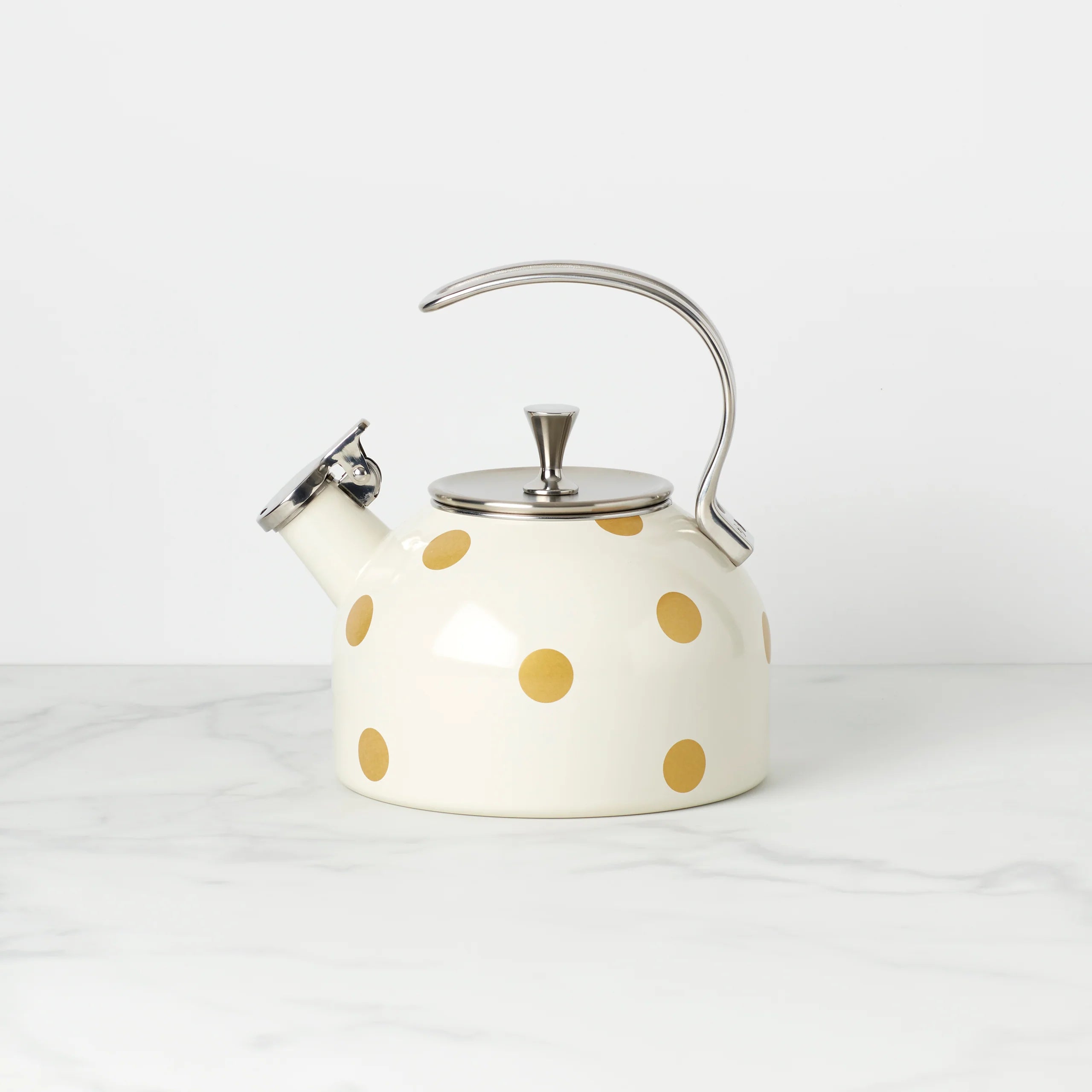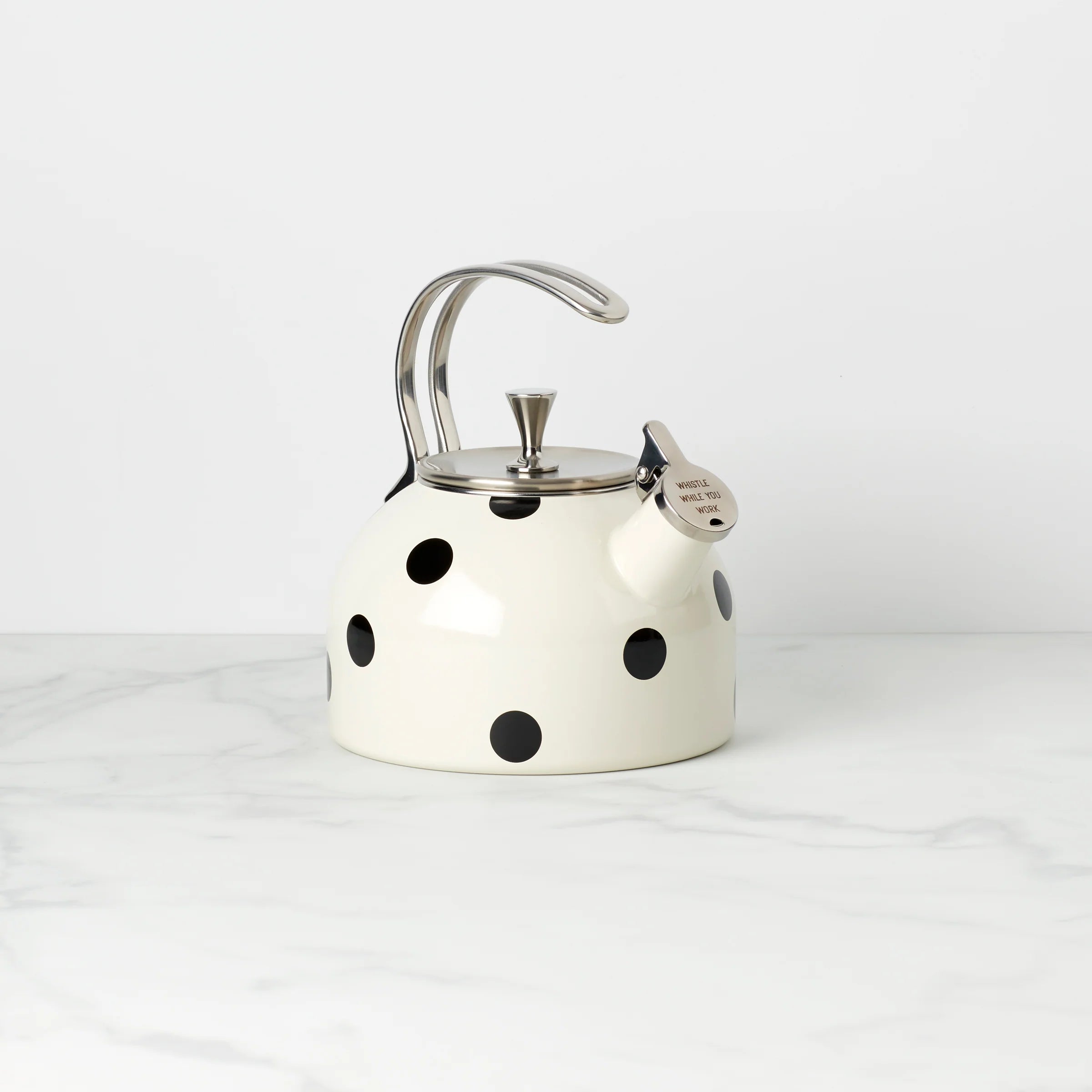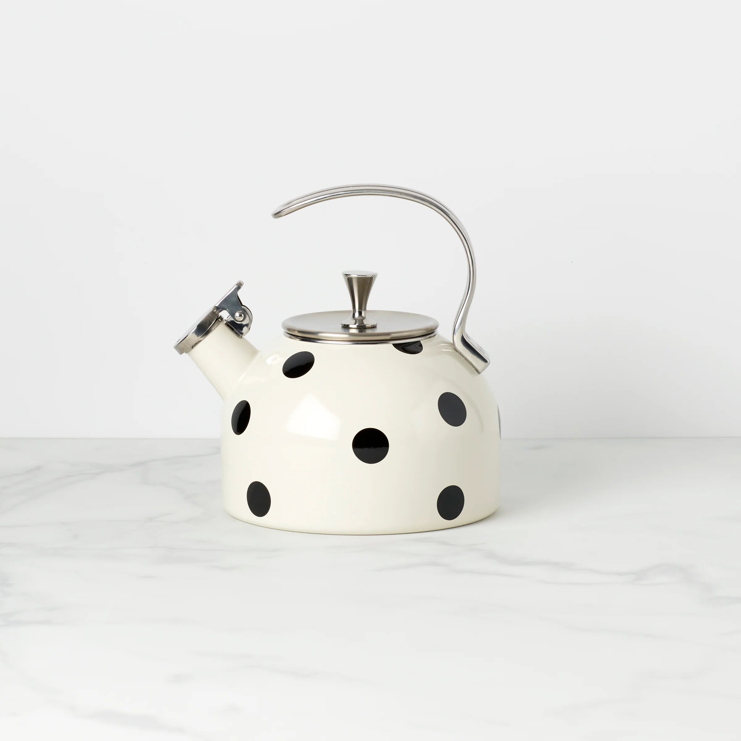 Decorated with a smattering of polka dots, this pretty tea kettle by kate spade new york is equal parts playful and chic It's crafted from durable enamelware and stainless steel so you can use it again and again (and again...)