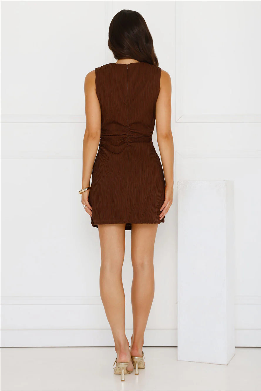 The Deserve Myself Mini Dress features a stretchy, textured design with a flattering wrap skirt for a chic yet effortless look. Pair with sandals or heels for a fresh, summer vibe.