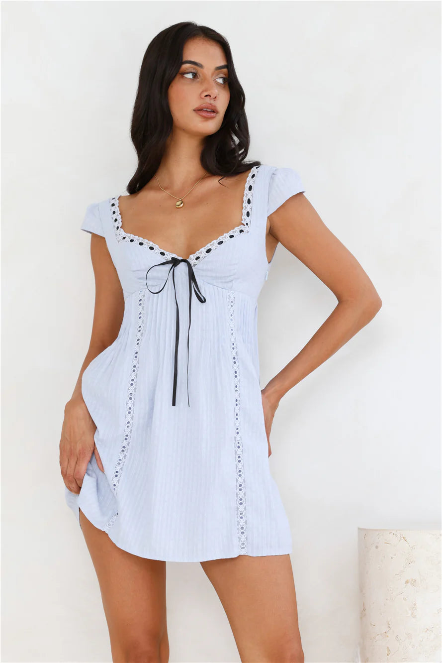 Daytime 'fit sorted with the Oak Tree Mini Dress. This flowy silhouette features cap sleeves, a ribbon to the neckline and gorgeous embroidered details. Style with heels and curls!