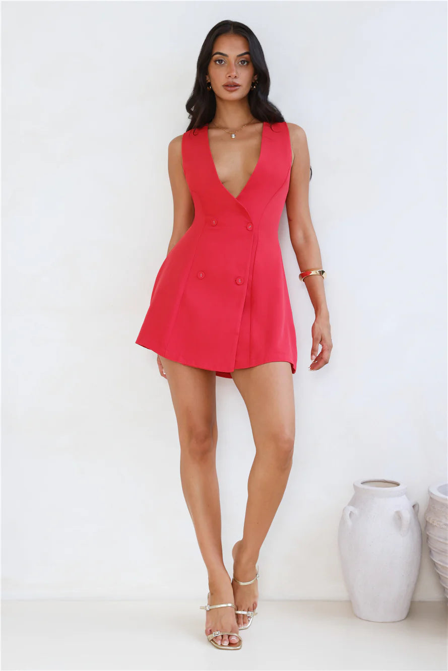 Elevate your work closet with the Office Chic Tailored Mini Dress. Featuring a button front and a tailored silhouette. Style with heels for a 'fit we love.