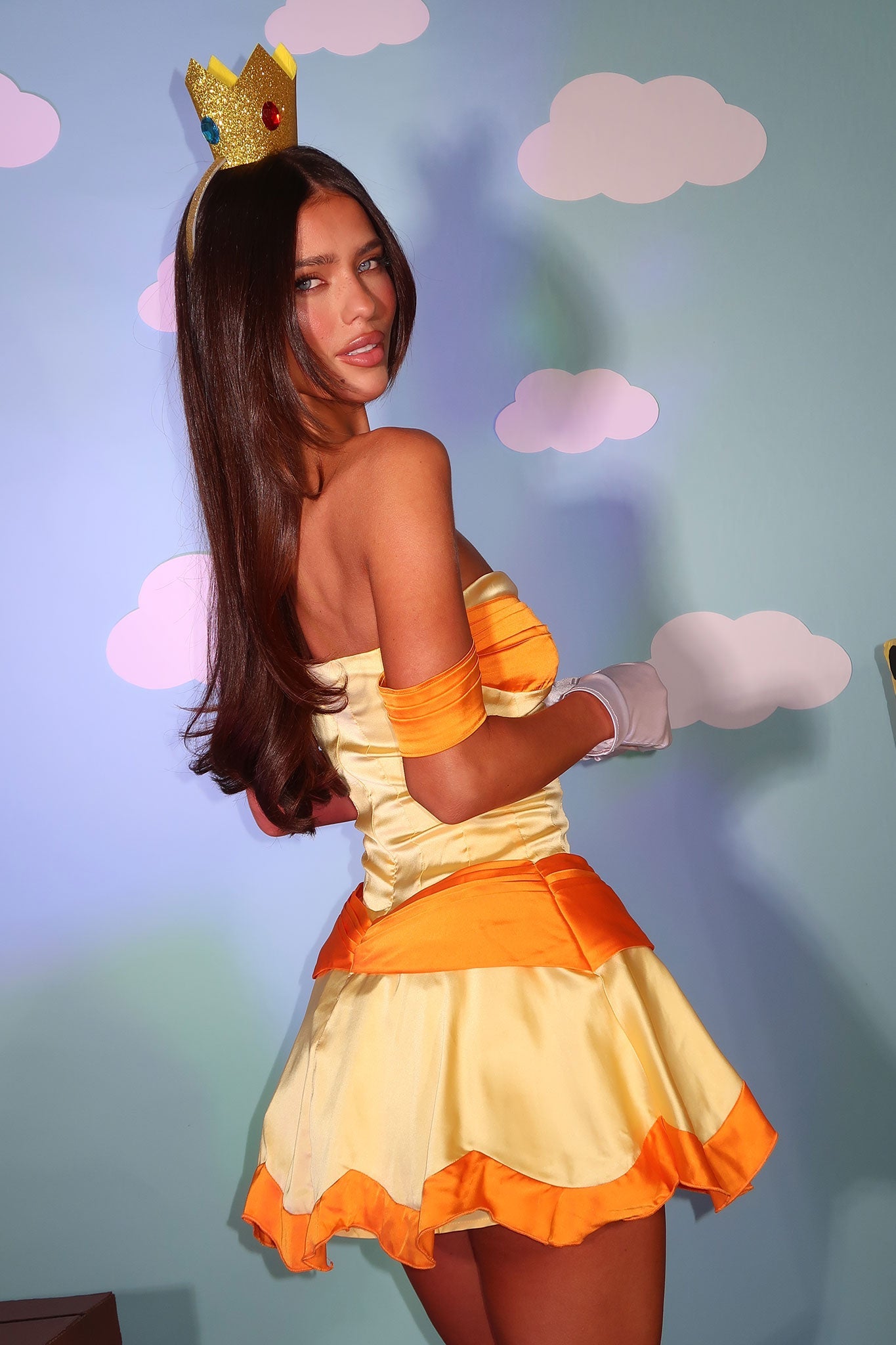 Unleash your inner princess with the Petal Princess Dress! This playful mini dress features an off-the-shoulder style and a sweetheart neckline, highlighted by contrasting bust, waist, and hem details. A sparkling gem at the centre front adds a magical touch, while silicone tape inside the neckline ensures it stays perfectly in place. Fully lined with a tulle under skirt for a charming, puffy look, it fastens with an invisible back zip and hook and eye closure. Complete your royal look with the matching Petal Princess accessory kit!