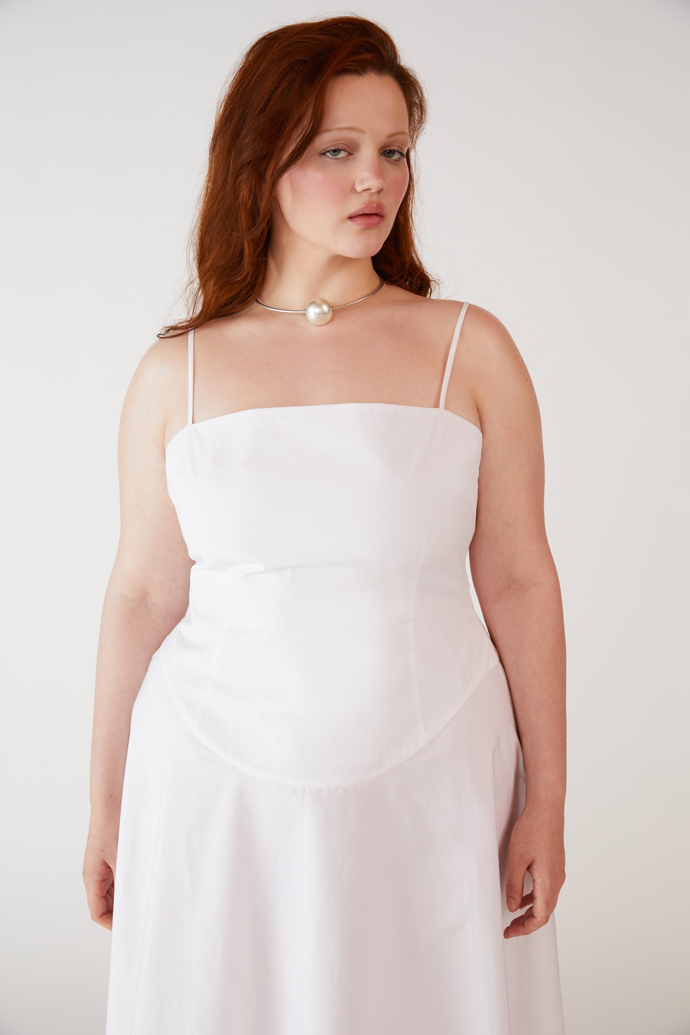 The Lady Cotton Dress is made from a soft, breathable cotton, designed and crafted in NYC. This tea length dress features delicate spaghetti straps and a flowy silhouette with gathered rouching at the center back. The perfect alternative to the classic Silk Princess Slip Dress, the Cotton Princess Slip Dress is a great option for those who prefer a more casual and comfortable feel.