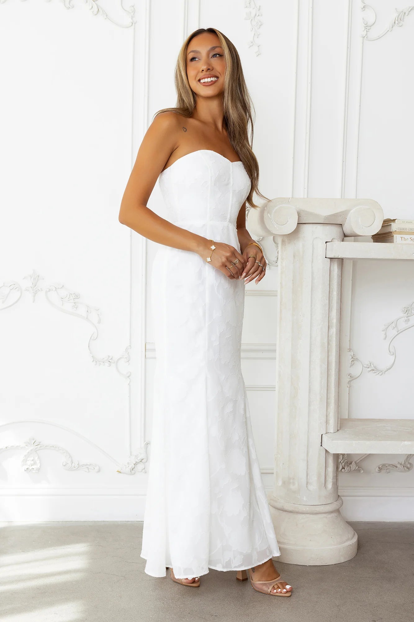 Embrace effortless elegance in the Sea Kissed Strapless Maxi Dress, featuring a textured print, structured boning to the bodice, a dreamy flowy skirt, and an elastic back for the perfect fit! Style with heels.
