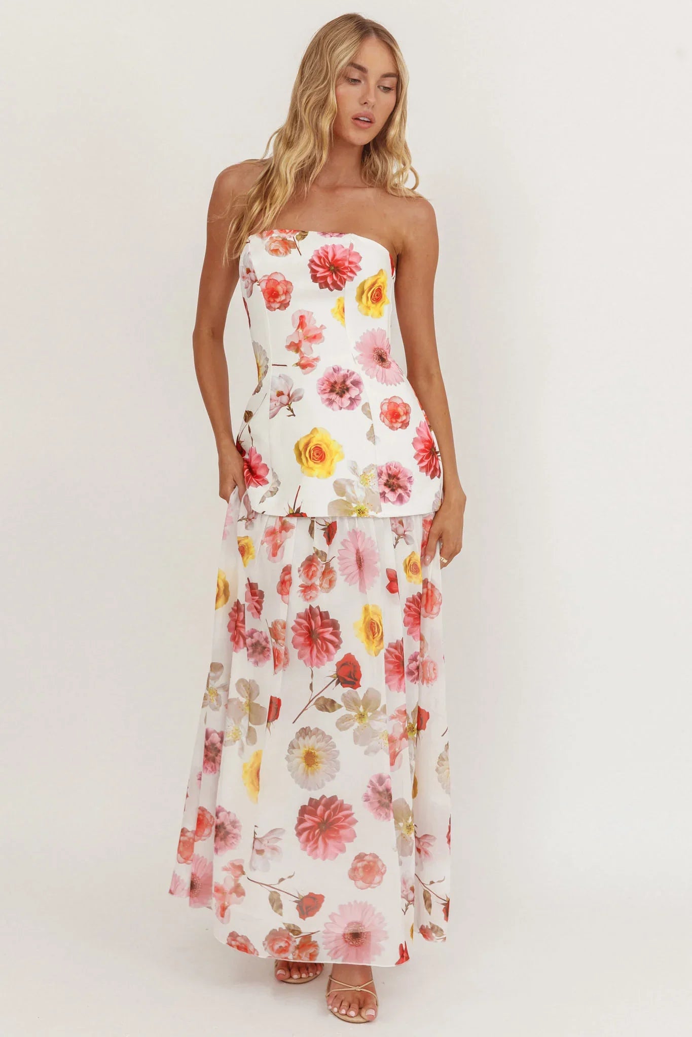Twirl the night away in our stunning Wilma midi dress. It features a gorgeous sheer hem and a classic strapless design. It's perfect for warm Summer nights with your girls at your fave rooftop spot. Team it with strappy heels, a sleek bun and hoops for an It Girl look.